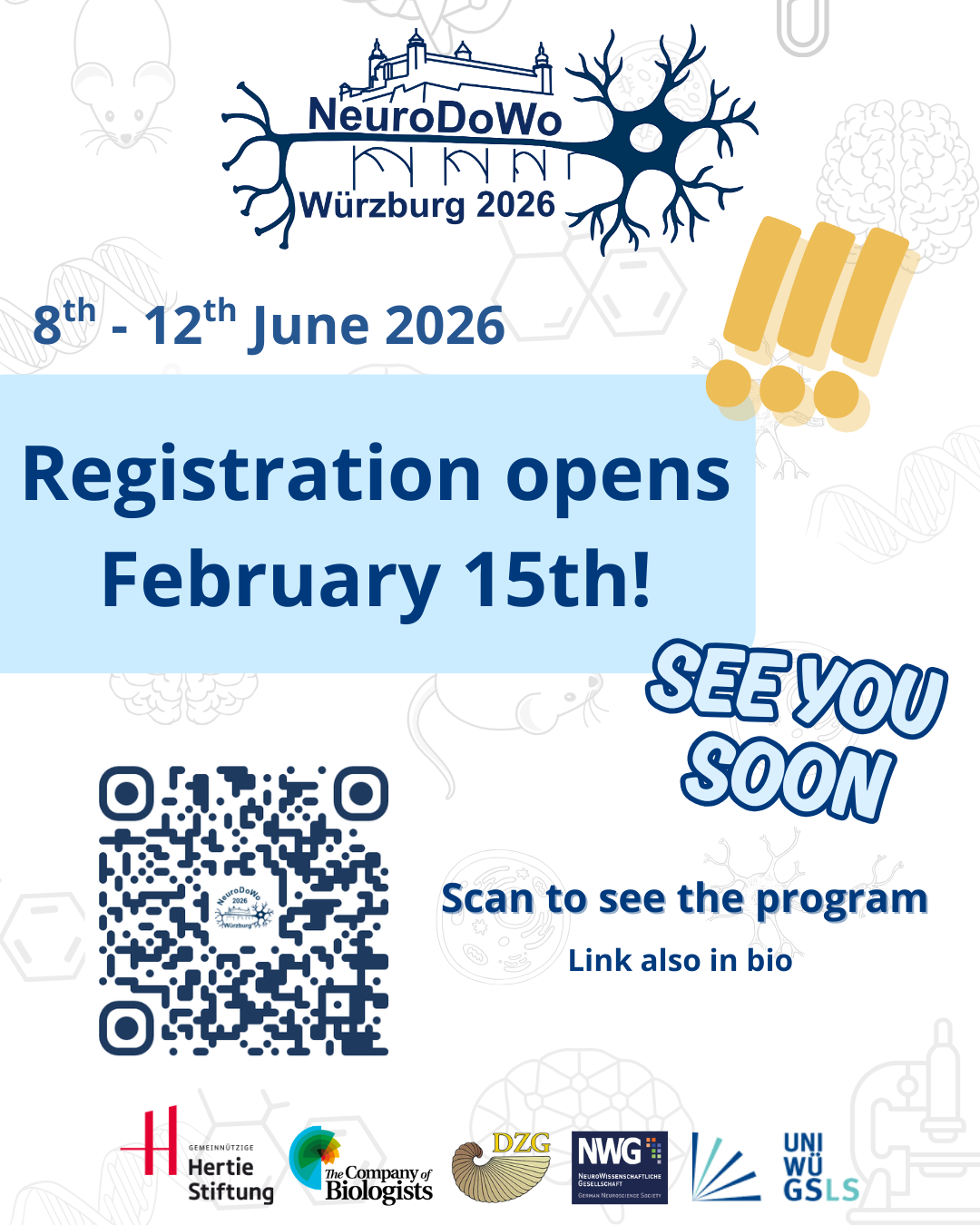 The NeuroDoWo has been organized by doctoral candidates for over 30 years under the patronage of the German Zoological Society (Deutsche Zoologische Gesellschaft, DZG) and German Neuroscience Society (Neurowissenschaftliche Gesellschaft e.V.). We aim to reach early-career scientists with a diverse neuroscientific background, from Germany and abroad. The conference promotes communication across disciplines and allows young scientists to gain experience in presenting and discussing their research in a talk or with a scientific poster.
