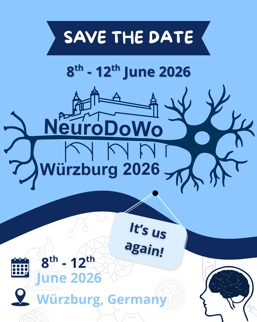 The NeuroDoWo has been organized by doctoral candidates for over 30 years under the patronage of the German Zoological Society (Deutsche Zoologische Gesellschaft, DZG) and German Neuroscience Society (Neurowissenschaftliche Gesellschaft e.V.). Our aim is to reach early career scientists with a diverse neuroscientific background, from Germany and abroad. The conference promotes communication across disciplines and to allow young scientists to gain experience in presenting and discussing their research in a talk or with a scientific poster. The NeuroDoWo 2026 will take place from 8th - 12th June 2026 in Würzburg